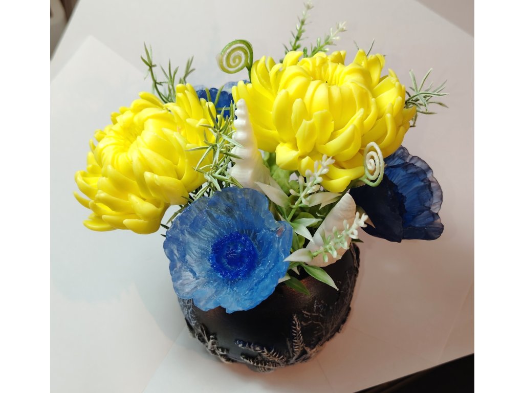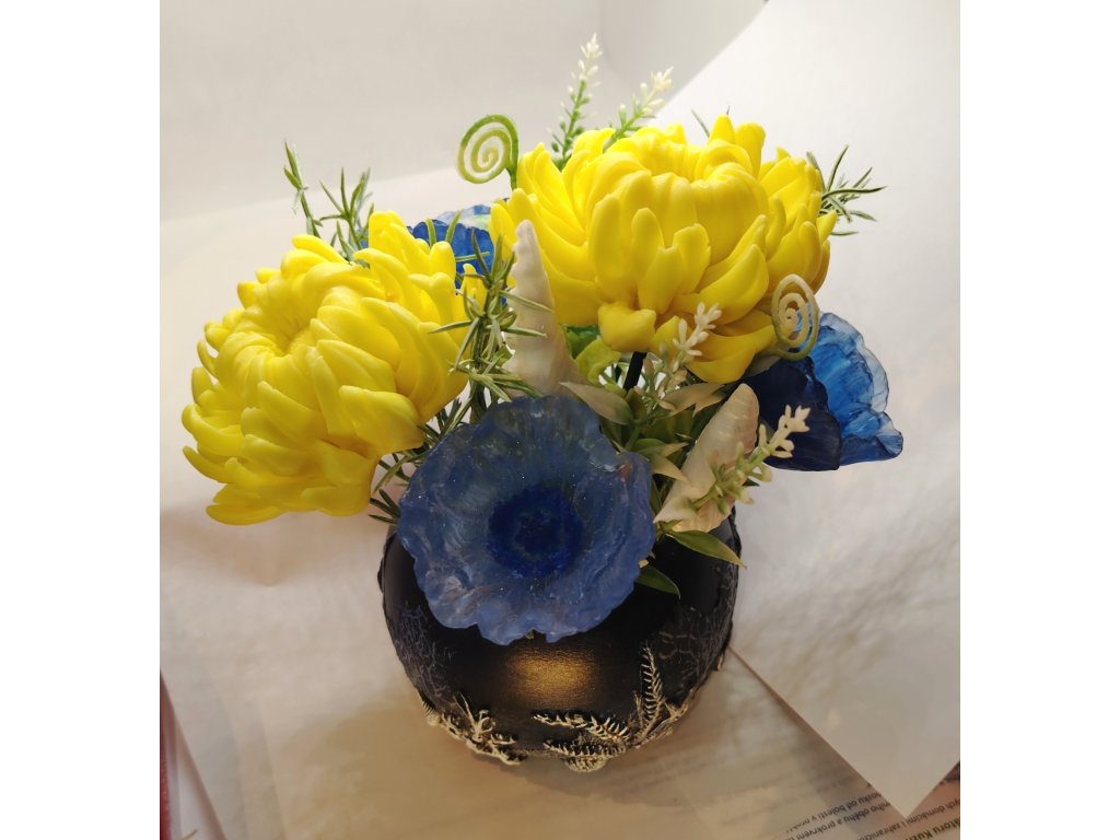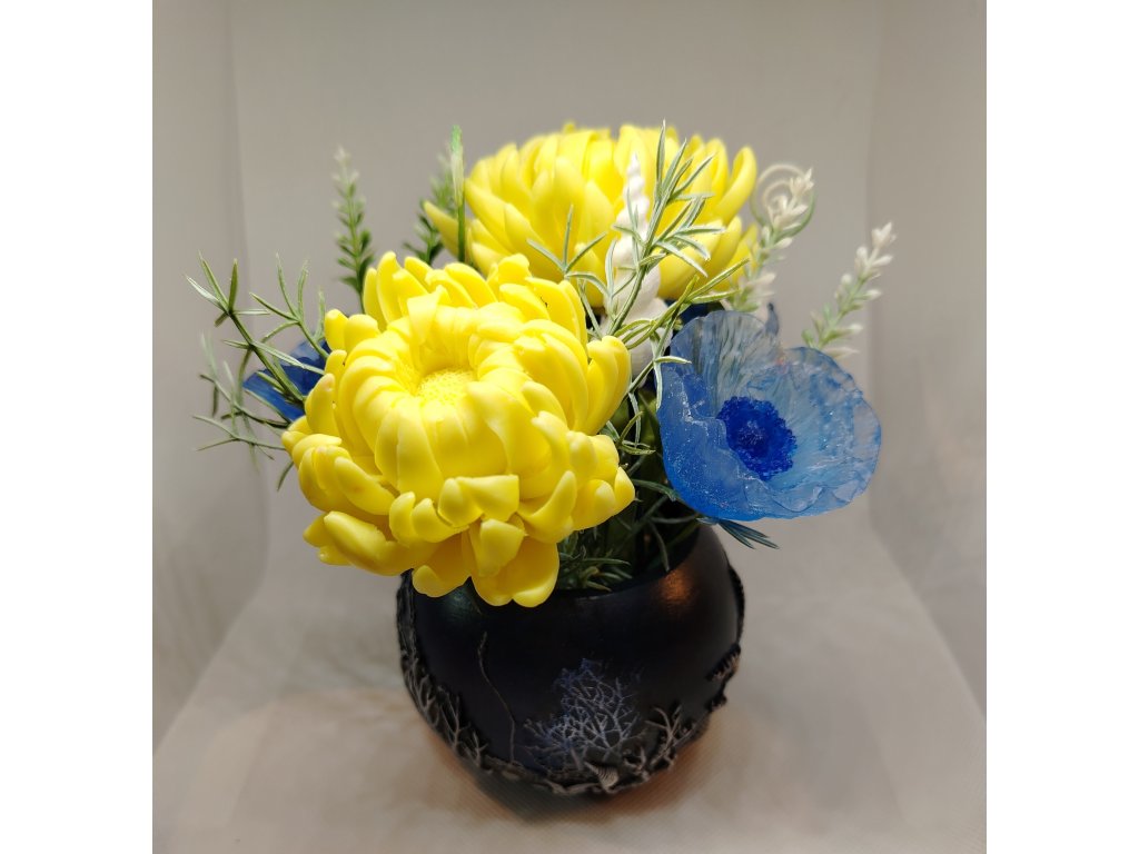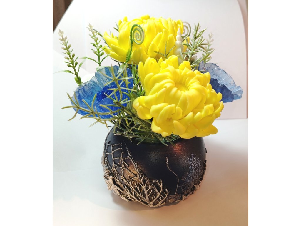 Květináč je vyrobený ručně z keramické hmoty. Celková váha kytici s květináčem - cca 400 g.