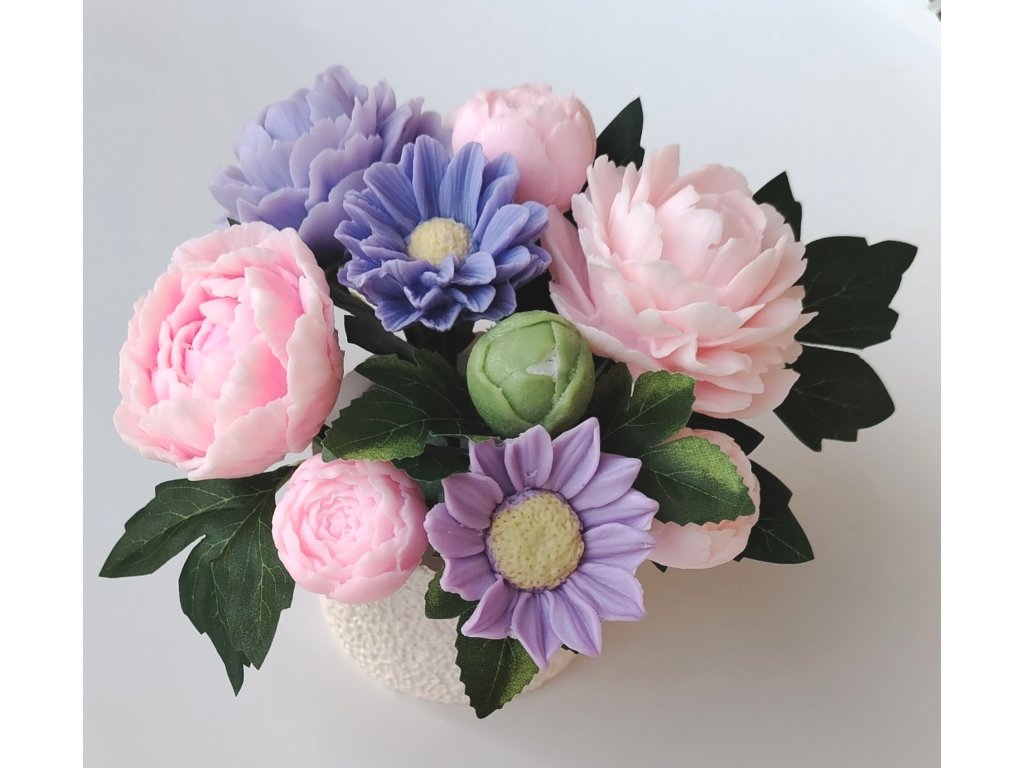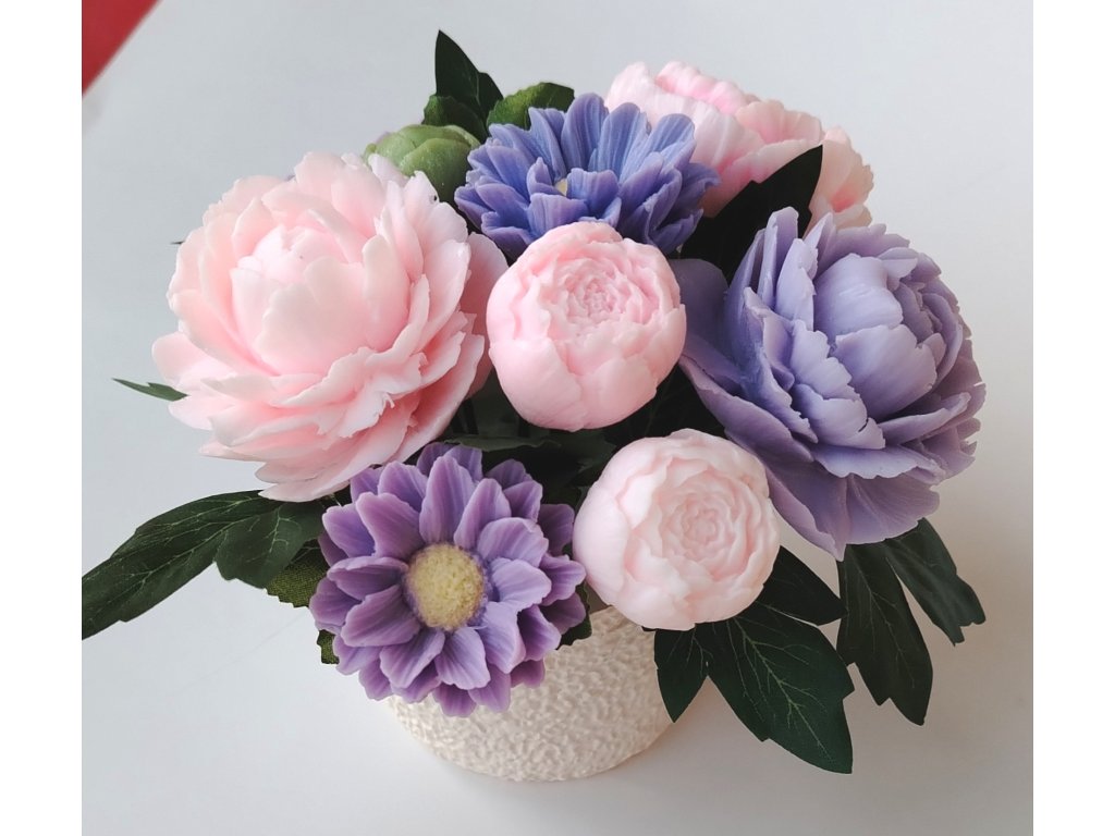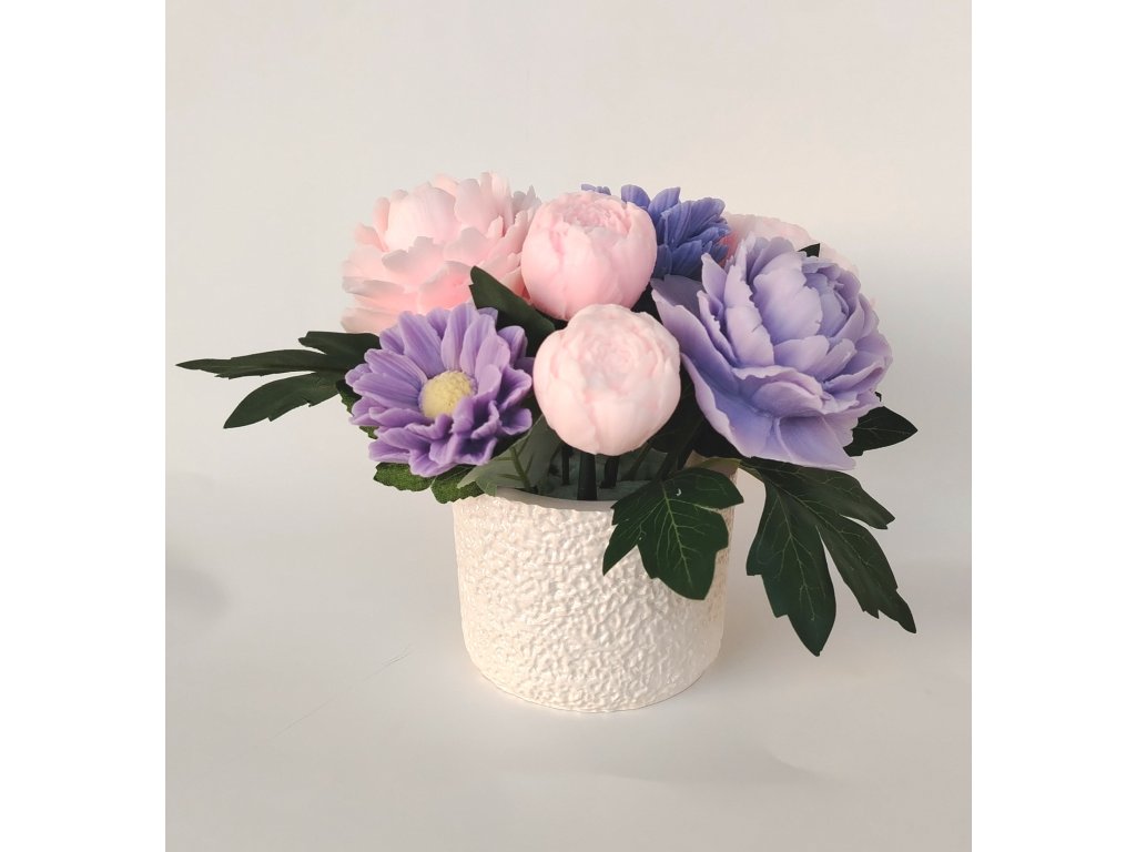 Mýdlové květiny vypadají jako živé. Mýdla a květináč jsou vyráběná ručně, umělecky uspořádány a krásně prezentovány. Mýdlové kytice jsou originálním krásným dárkem pro každou příležitost. Romantická kytice krásně doplní váš interiér, je vhodná jako barevná a voňavá dekorace do koupelny nebo ložnice, může se hodit na provonění prádla apod. Každá kytice je neopakovatelný originál, 100% ruční práce.
