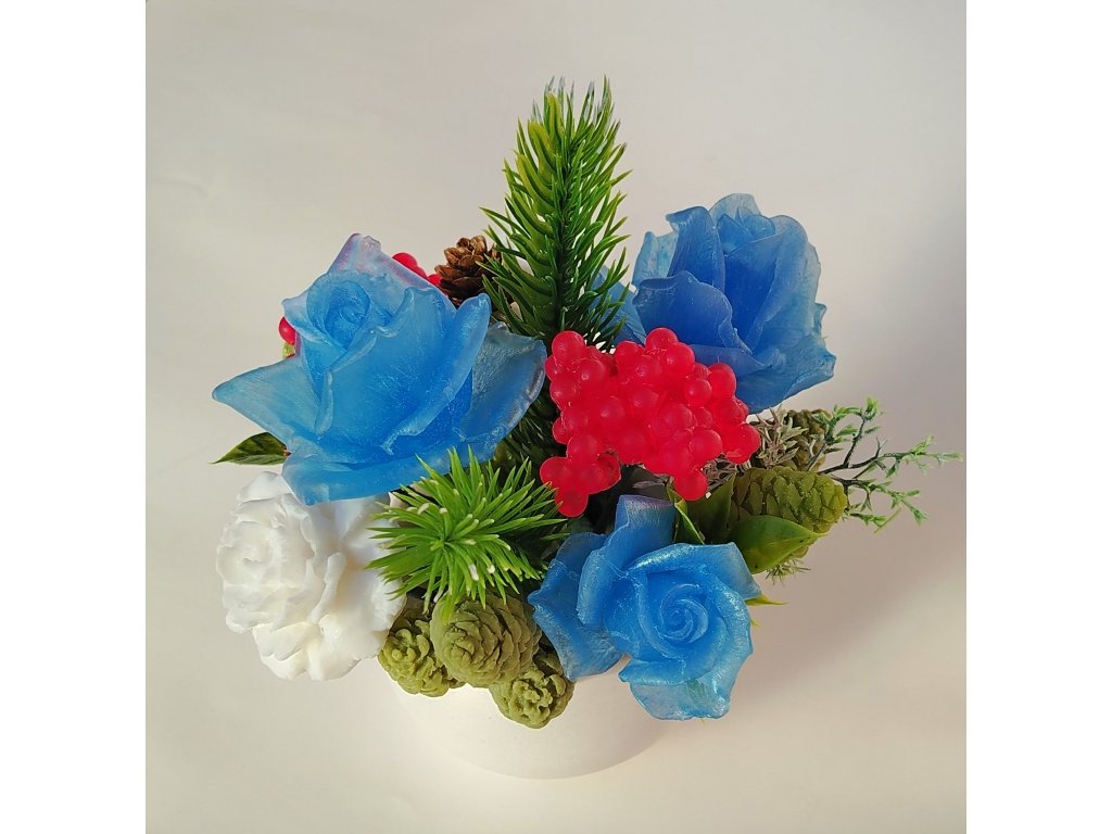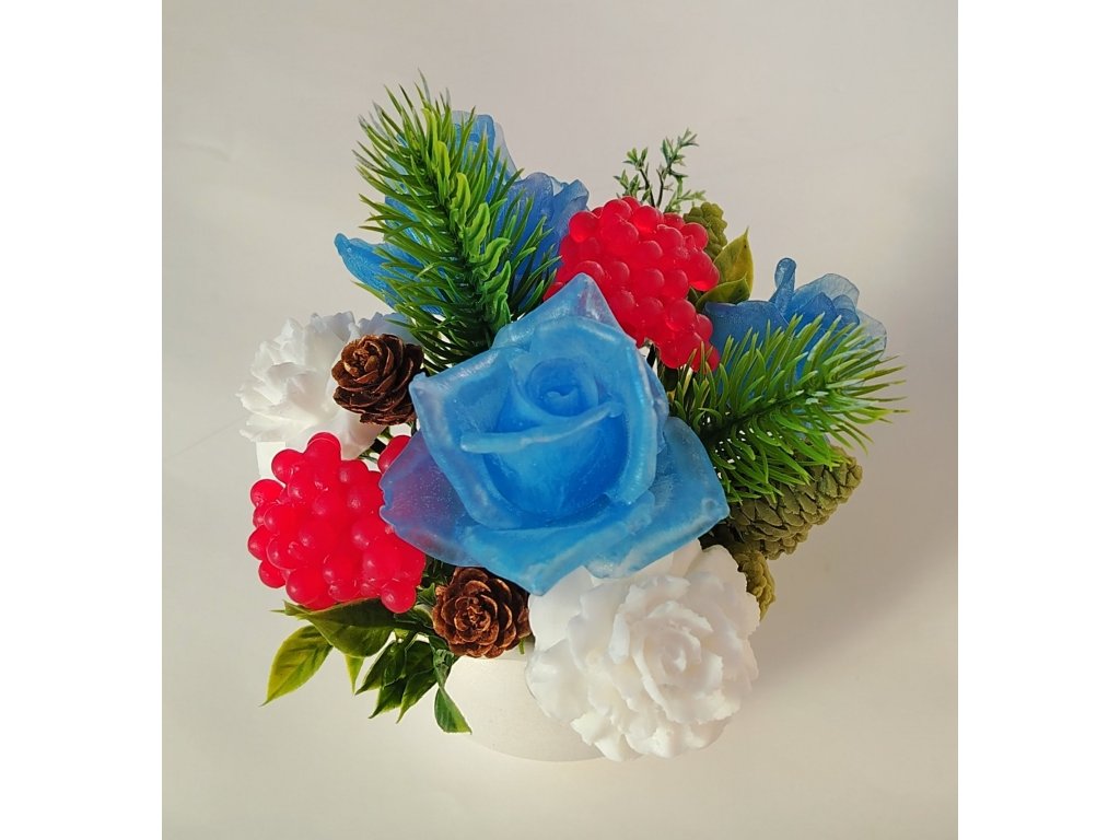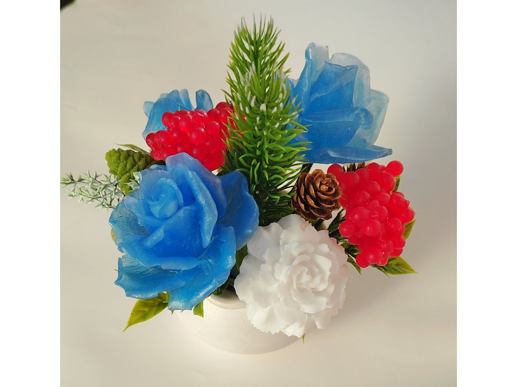 Romantická mýdlová kytice – voňavá dekorace. Krásná harmonický sladěná kytice v zimních barvách.